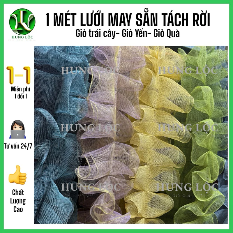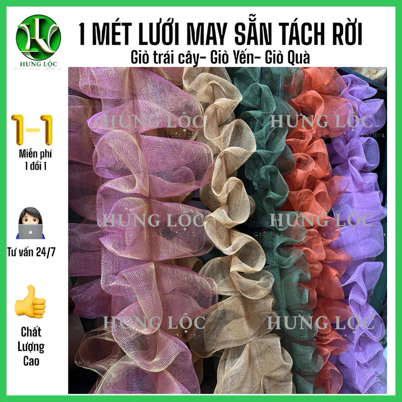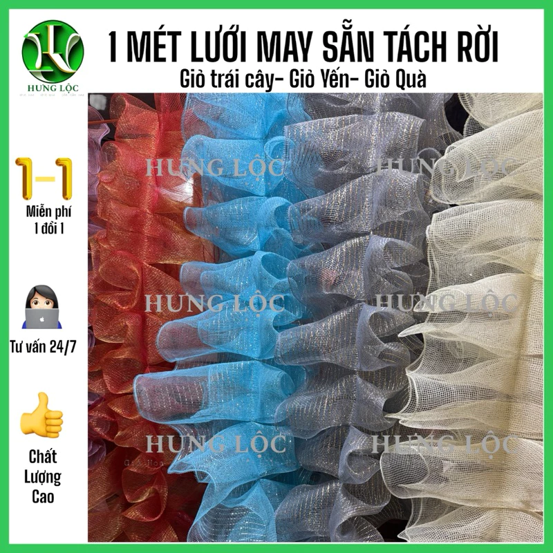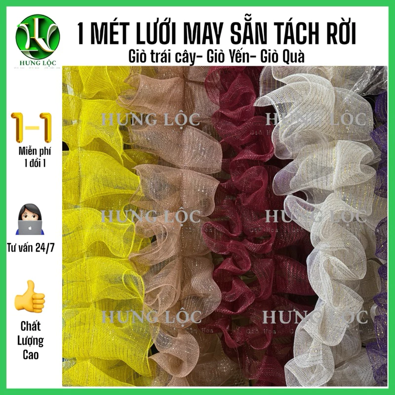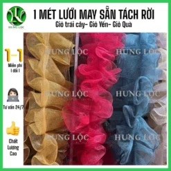 [1m] Lưới thô may xếp bèo sẵn tách rời,dán bằng keo nến hoặc ghim bấm trang trí giỏ trái cây,giỏ yến