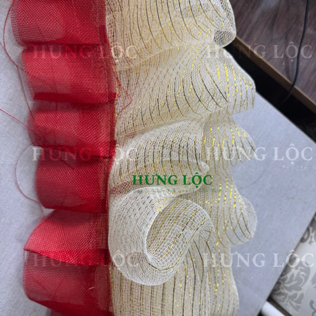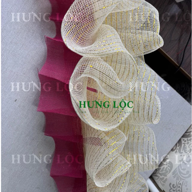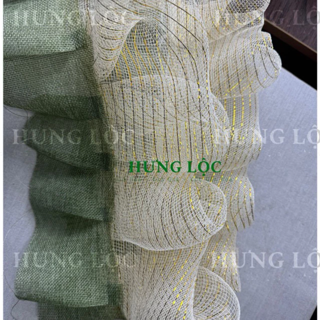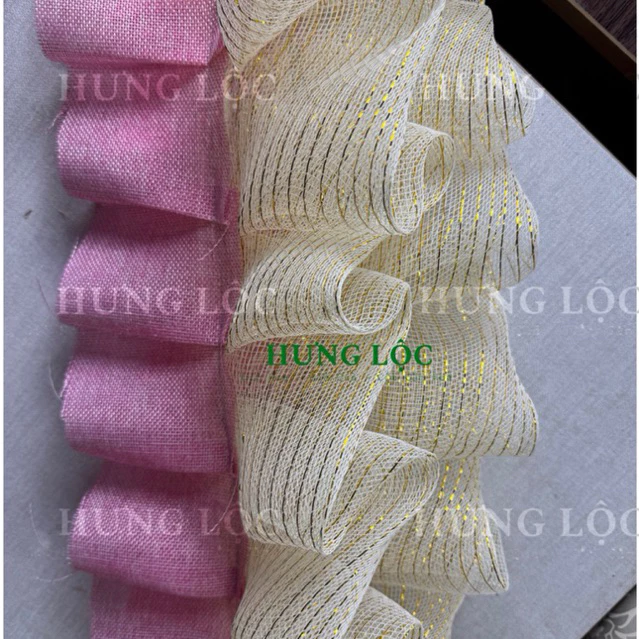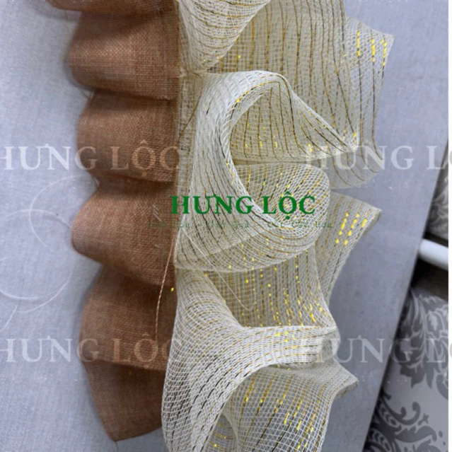 • Thẩm mỹ cao: Sự kết hợp giữa lưới kem kim tuyến và vải bố xếp li mang lại cảm giác tinh tế, độc đáo cho từng sản phẩm giỏ quà.