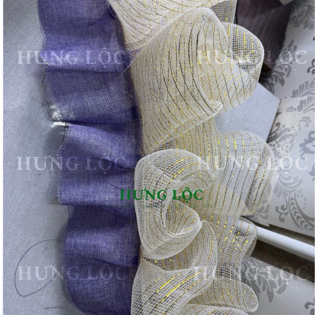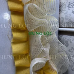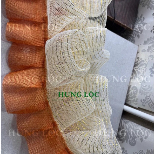 Review Lớp vỏ may xếp bèo sẵn tách rời, 2 tầng phối lưới kem kim tuyến và vải bố xếp li, dán bằng keo nến hoặc ghim bấm