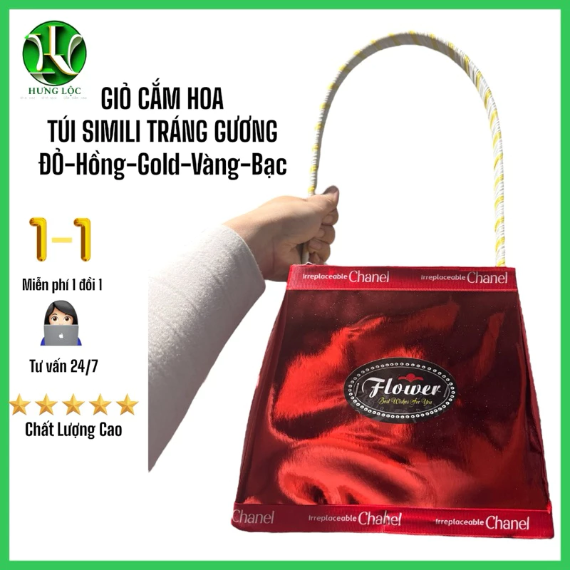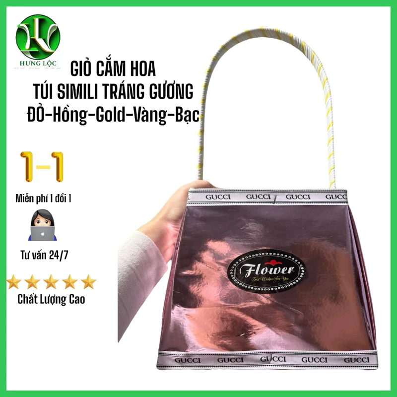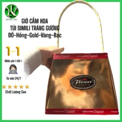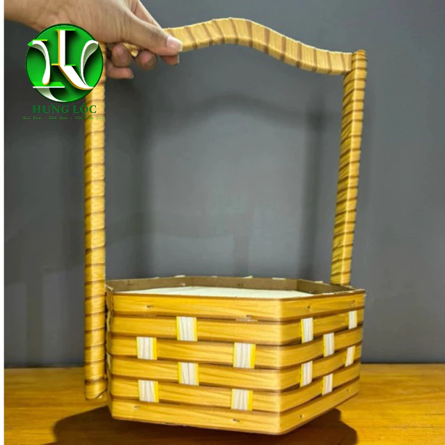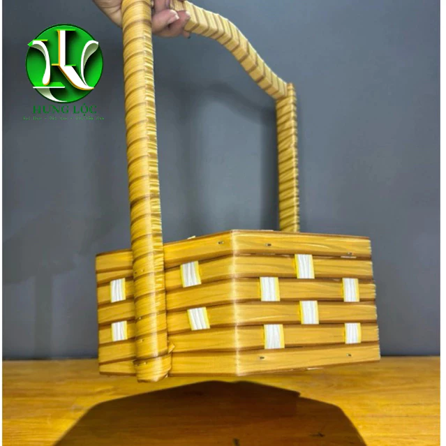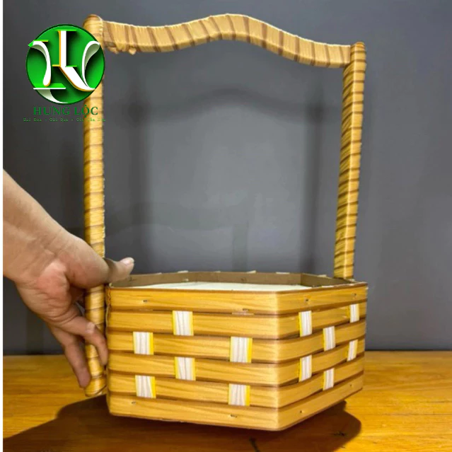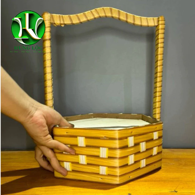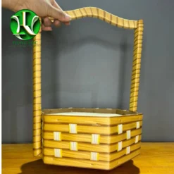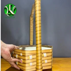 Review Túi cắm hoa bằng gỗ bọc da simili màu hồng, có quai, cao 20cm