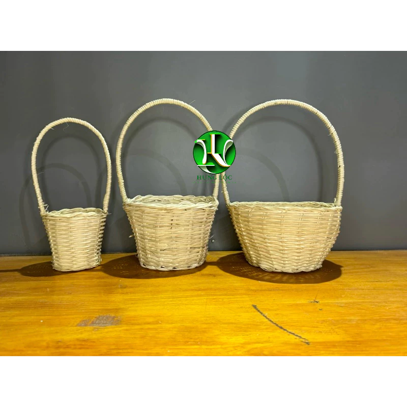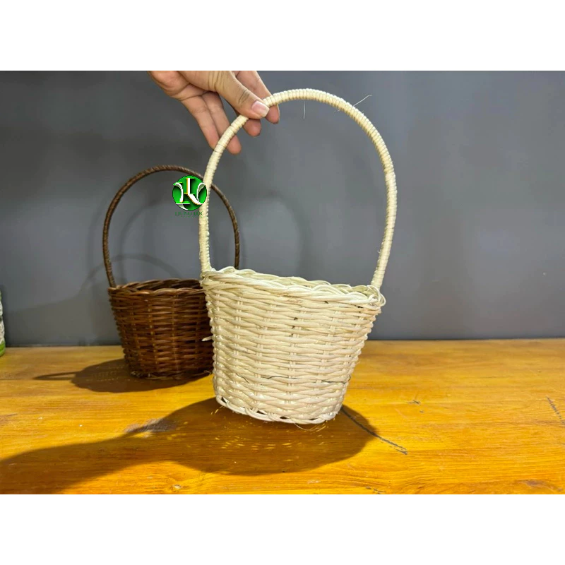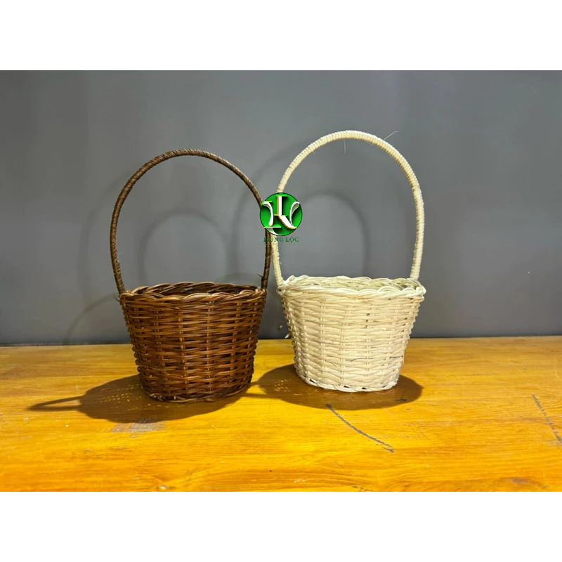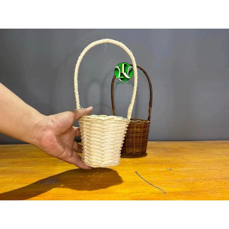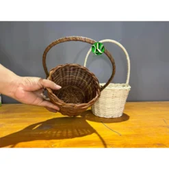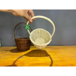 Review Giỏ mây cắm hoa, giỏ mây mini màu nâu và màu trắng có quai, miệng 11cm, 16cm, 20cm