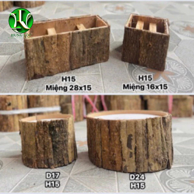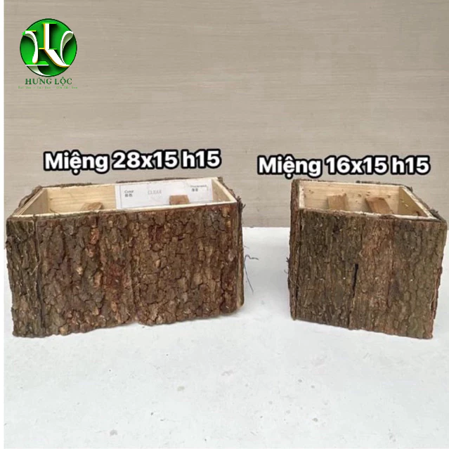 Hộp gỗ cắm hoa vỏ cây độn đế phong cách vintage độc đáo, quà tặng ý nghĩa yêu thương