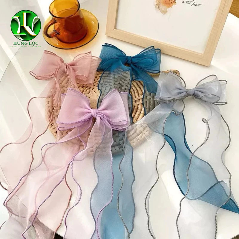 Chất liệu voan mỏng, trong suốt giúp ruy băng có sự nhẹ nhàng và thanh thoát, tạo độ bồng bềnh, mang lại cảm giác tự nhiên nhưng vẫn rất sang trọng. Vì không có lõi, ruy băng dễ dàng uốn nắn, gấp nếp, hoặc tạo kiểu theo ý muốn, phù hợp với nhiều phong cách trang trí khác nhau từ cổ điển đến hiện đại. Ruy băng voan sóng đuôi cá này không chỉ là vật liệu trang trí mà còn là điểm nhấn tuyệt vời cho bất kỳ sản phẩm nào.